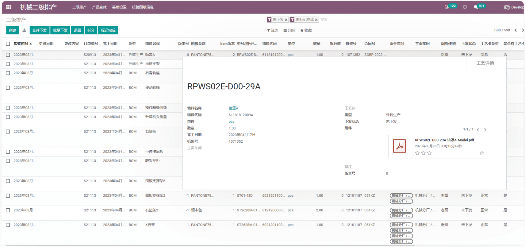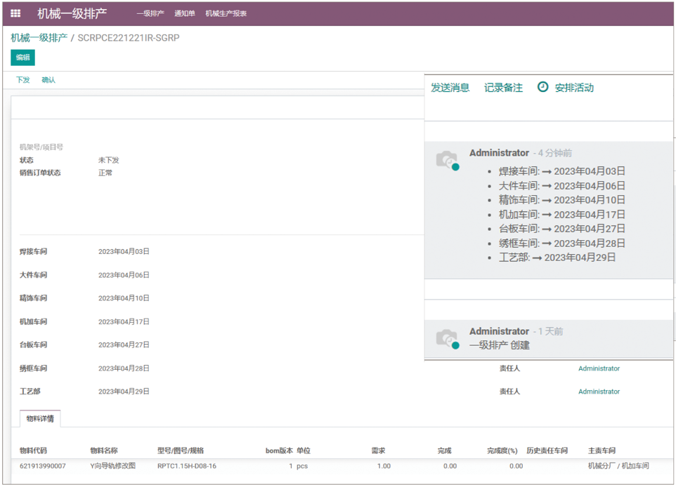 主要用于接收一级排产下推的生产任务,收到任务后进行完工时间、主责车间的确认,以及相关生产过程中工艺卡的编写。
