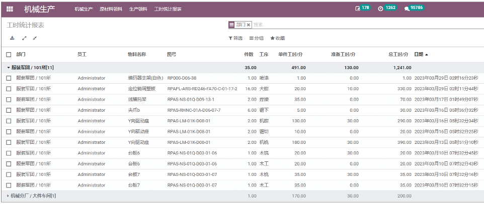 通过在工艺卡维护的公式信息可以精准的统计到每一个员工每个月的有效工时数据,支持按照部门、员工、日期等不同的维度进行分析。