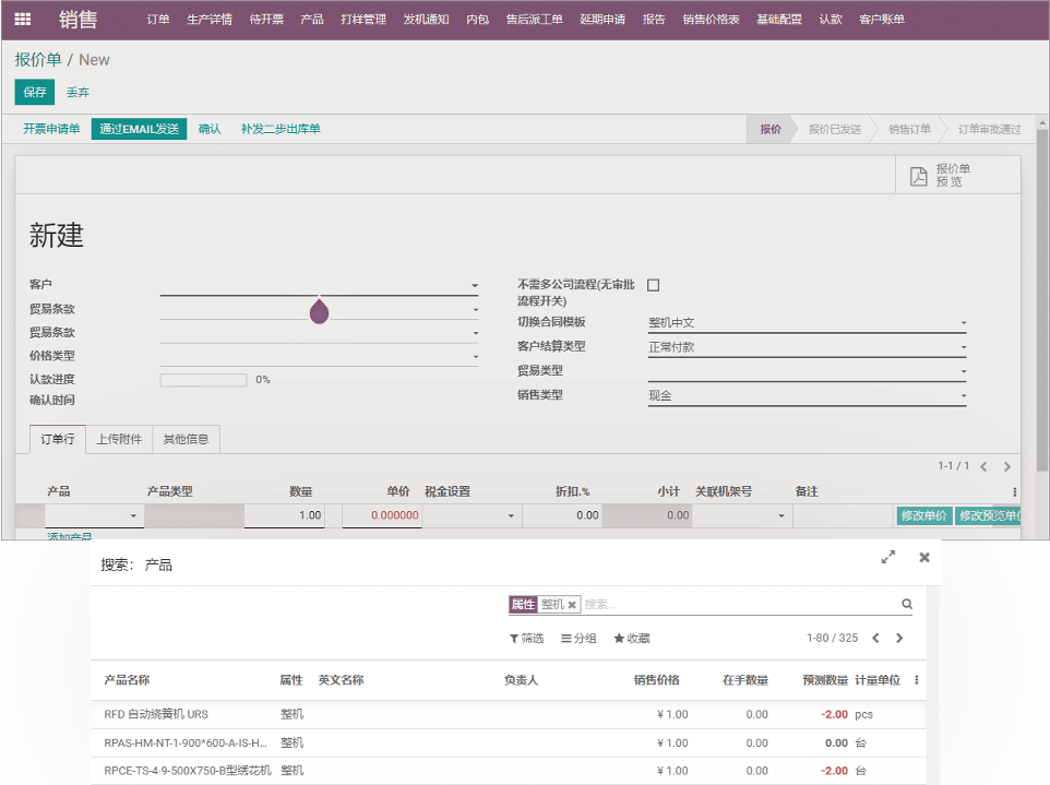 业务员通过系统在线制作报价单,产品信息公开、透明、可以实时查询库存信息、及时掌握产品库存数据。