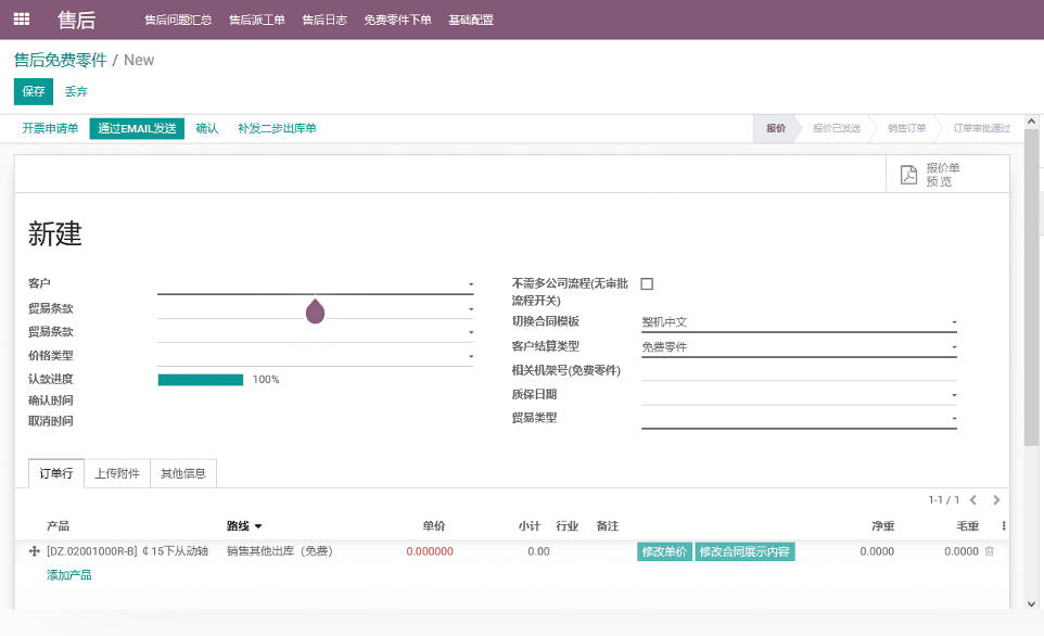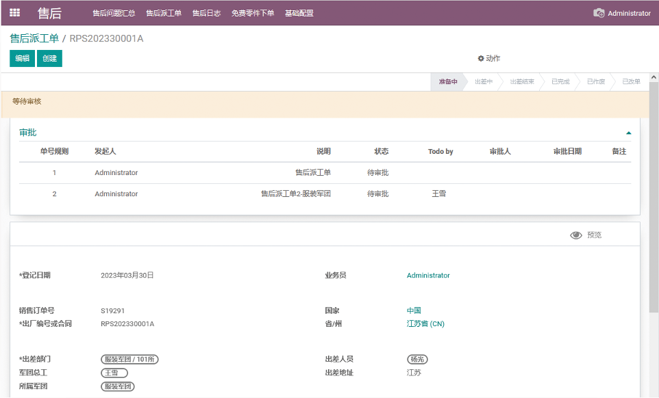 具备多类型派工单的制作,如打样申请派工单、客户交机派工单。同样由业务人员创建,推送后续部门执行。