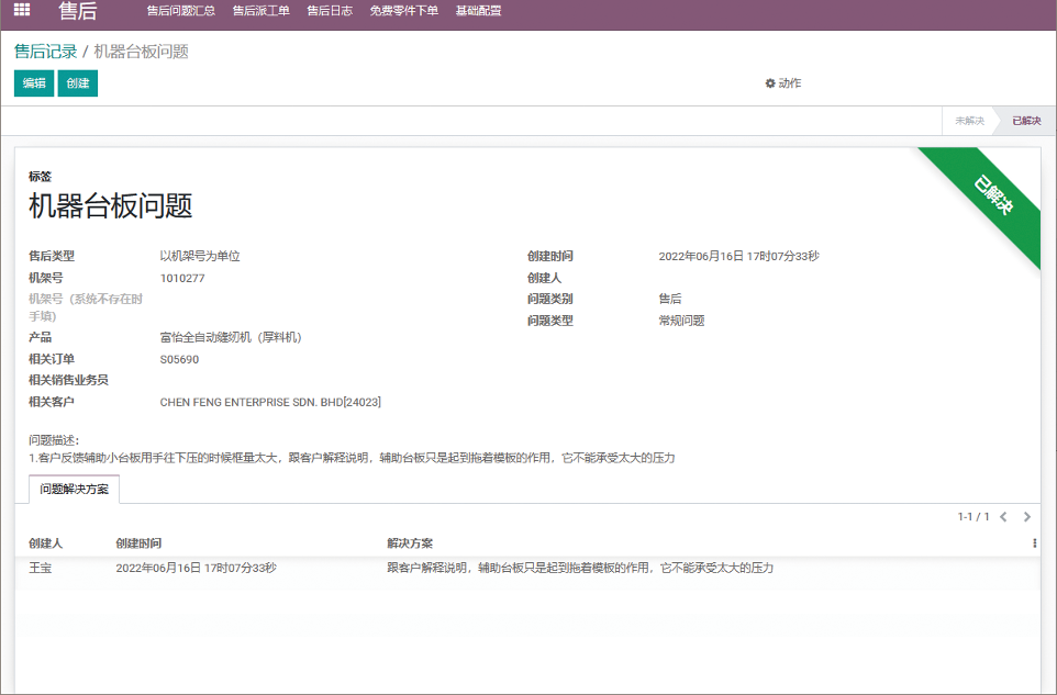 为了满足公司售后客服人员工作,减少客诉EDOS系统搭建售后模块、用于记录客户所提出的所有问题以及售后派工的处理