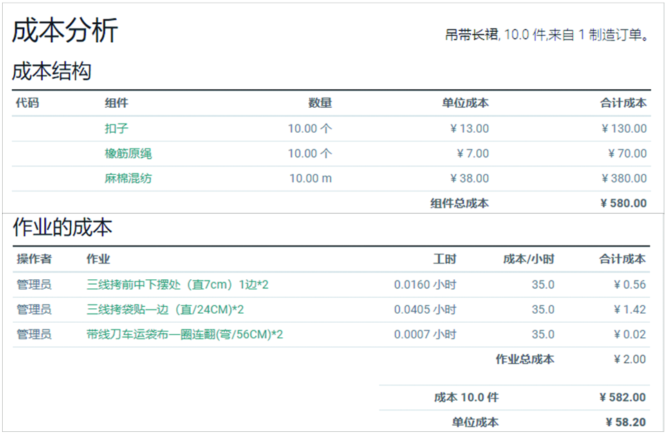通过在工作中心对成本信息的维护,系统自动获取工单加工时长,按照设定,自动计算出加工成本。