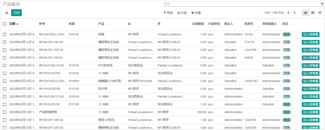 产品信息集成于条形码中,所有的单据通过系统进行流转,扫码功能办理出入库。