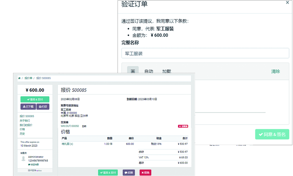 销售模块为用户提供电子合同、电子盖章、电子签名功能,销售单可直接关联交货单和财务数据,并